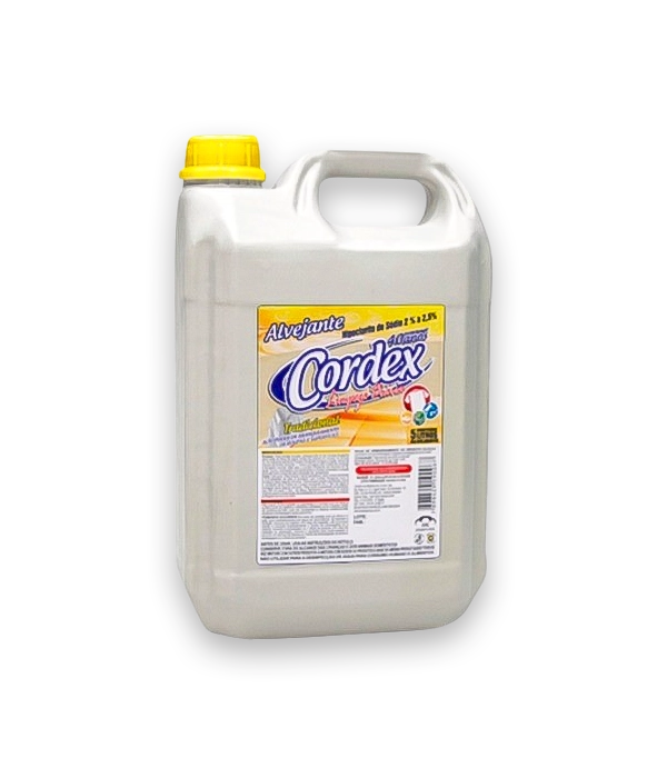 O Alvejante Cloro Cordex 5L é a escolha ideal para quem busca um produto eficaz, seguro e com alto poder de limpeza e desinfecção. Composto por uma solução estabilizada de hipoclorito de sódio com 2,0 a 2,5% de cloro ativo, ele é indicado tanto para a higienização de superfícies quanto para a remoção de manchas em roupas brancas, tornando-se um aliado indispensável na sua rotina de limpeza doméstica ou profissional.