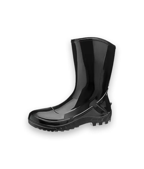 Fabricada 100% em PVC na cor preta, esta bota estilo galocha é uma escolha ideal para quem precisa de um calçado robusto e de fácil higienização. Seu cano médio de 25 cm proporciona maior cobertura e segurança, enquanto o solado antiderrapante garante firmeza ao caminhar, evitando escorregões em superfícies molhadas ou oleosas.
