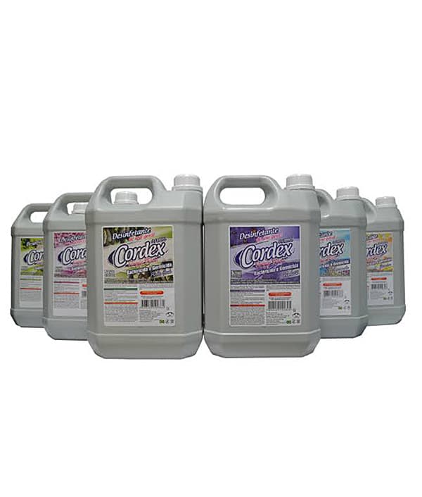 O Desinfetante Cordex está disponível na bombona de 5 litros, o que oferece excelente rendimento e custo-benefício para uso contínuo em ambientes de diversos tamanhos.