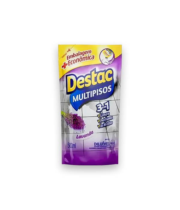 Com fórmula concentrada e alto rendimento, o Destac Multipisos é uma opção prática e econômica para a rotina de limpeza, garantindo brilho natural e proteção para seus pisos. Além disso, sua embalagem em refil permite uma reposição mais sustentável, reduzindo o descarte de plástico e contribuindo para o meio ambiente.