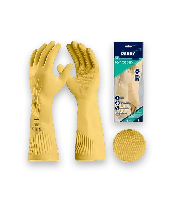 A Luva Látex Longatex, da renomada marca Danny, é uma excelente escolha para quem busca proteção química, resistência e conforto em atividades que exigem imersão até o antebraço. Confeccionada em látex natural de alta qualidade, essa luva foi projetada especialmente para oferecer segurança em ambientes úmidos, com produtos químicos ou durante tarefas com alto grau de abrasividade, como por exemplo o manuseio de produtos Limpa Pedra, detergentes alcalinos, desengraxantes e demais produtos de limpeza pesada.