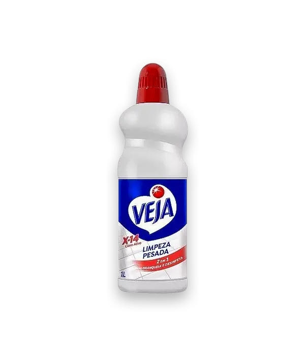 O Multiuso Veja Cloro Limpeza Pesada 1L é o aliado ideal para quem busca limpeza profunda, desinfecção eficiente e ação branqueadora em um só produto. Com a tecnologia exclusiva Cloro Ativo X-14, este poderoso limpador 2 em 1 foi desenvolvido especialmente para enfrentar as sujeiras mais difíceis, eliminando germes, bactérias e o limo escuro que se forma entre os pisos e em outras áreas úmidas da casa.