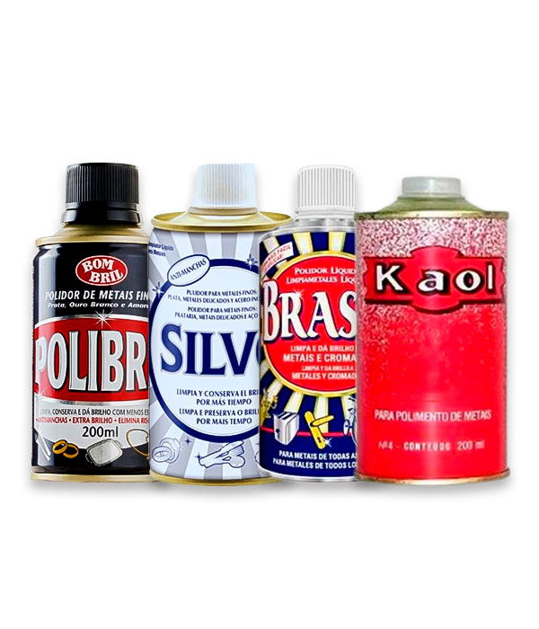 Os polidores de metais Brasso, Kaol, Silvo e Polibril são produtos especialmente desenvolvidos para limpeza, conservação e brilho de metais delicados. Com uma fórmula eficiente e segura, esses produtos renovam a aparência de metais preciosos e ornamentais, como prata e ouro, além de serem indicados para latão, cobre, alumínio, aço inoxidável e outros metais.