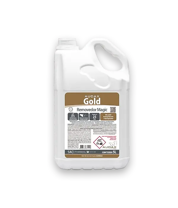 O Removedor Magic, da marca Audax Gold, é um produto de alta performance desenvolvido para a remoção eficaz de sujeiras pesadas, graxas, ceras, acabamentos acrílicos e seladores em pisos. Sua fórmula avançada conta com um alto poder de solvência, proporcionando uma ação desengordurante e desengraxante que facilita a limpeza de diversas superfícies.