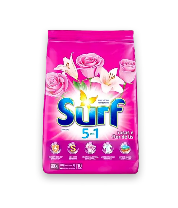 Além de remover manchas difíceis, proteger as cores e deixar os tecidos com uma fragrância duradoura, o Surf 5 em 1 também oferece um ótimo custo-benefício, tornando-se a solução ideal para quem deseja eficiência na lavagem sem comprometer o orçamento.